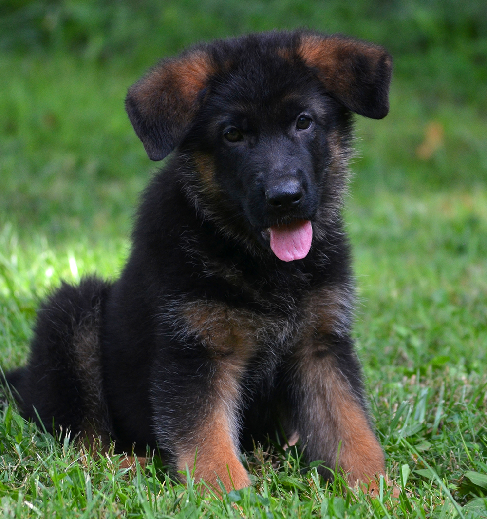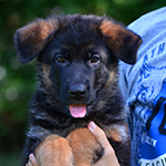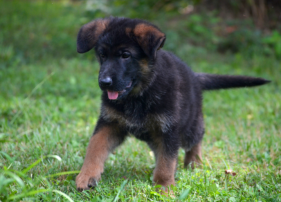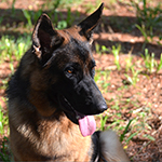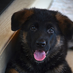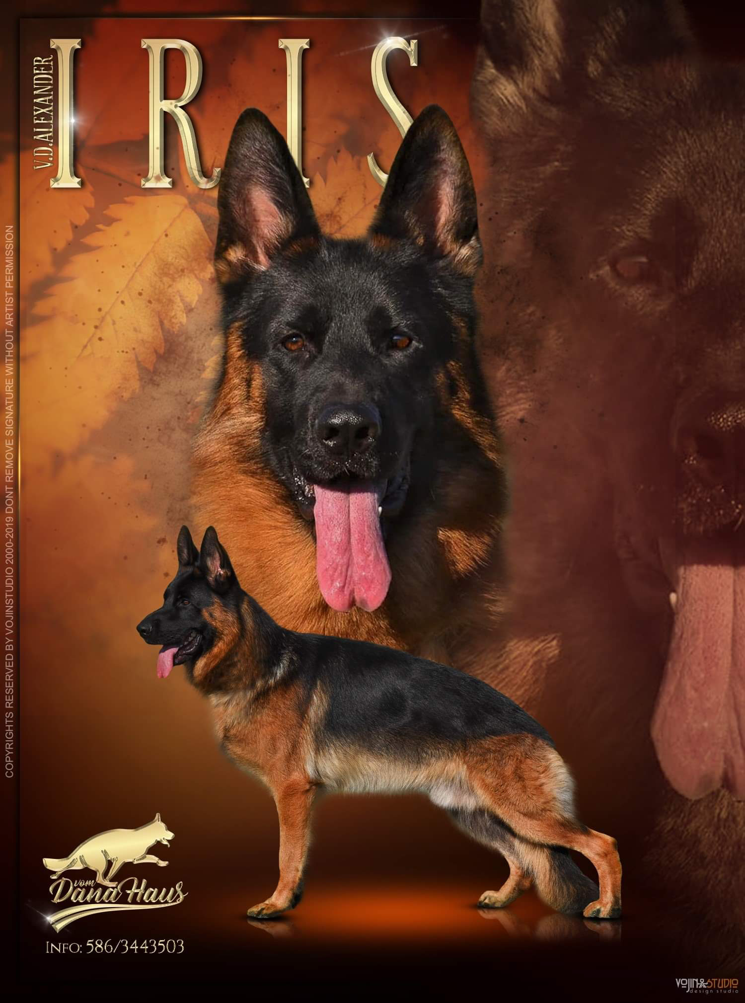 Drea ("Dray-uh" - meaning courageous) is a red and black European Showline daughter of our Velvet, and thus granddaughter of our popular guy, Finn! Drea's father is 5x SG1 Iris v.d. Alexander BH AD IPO (click for photo).