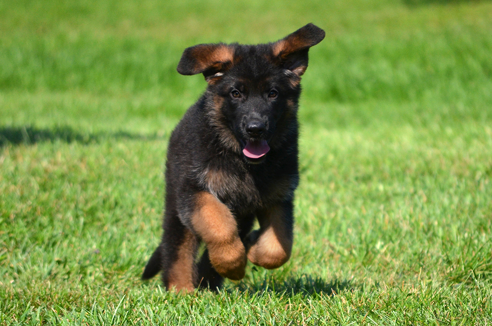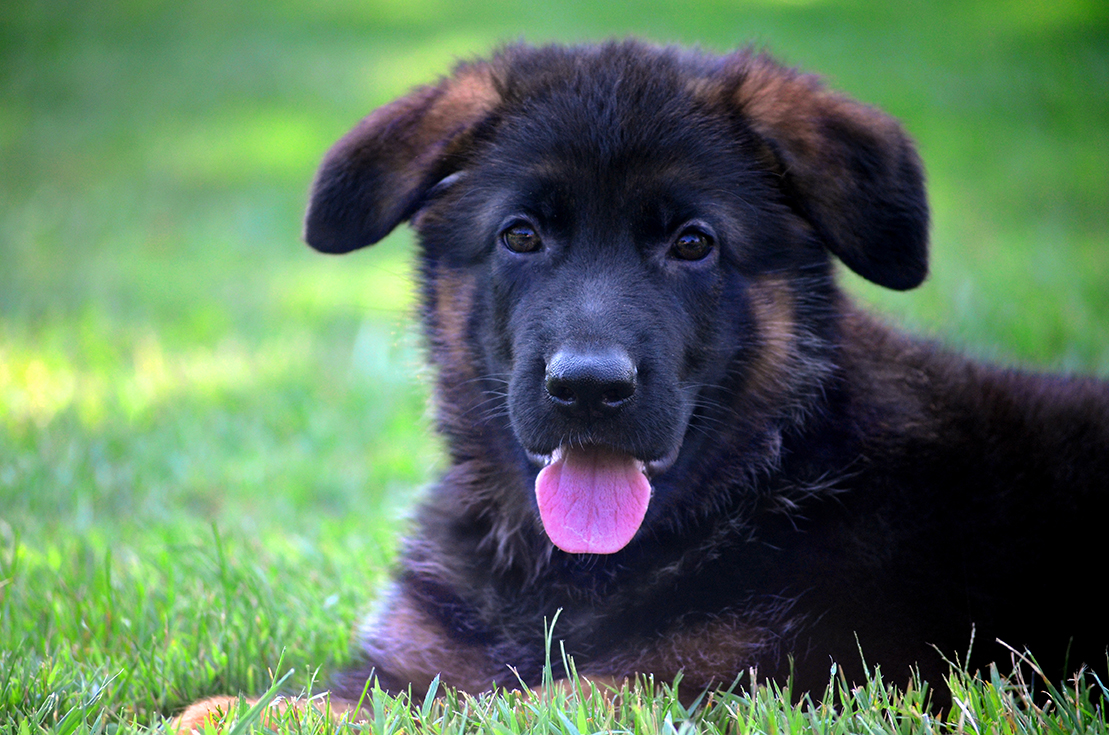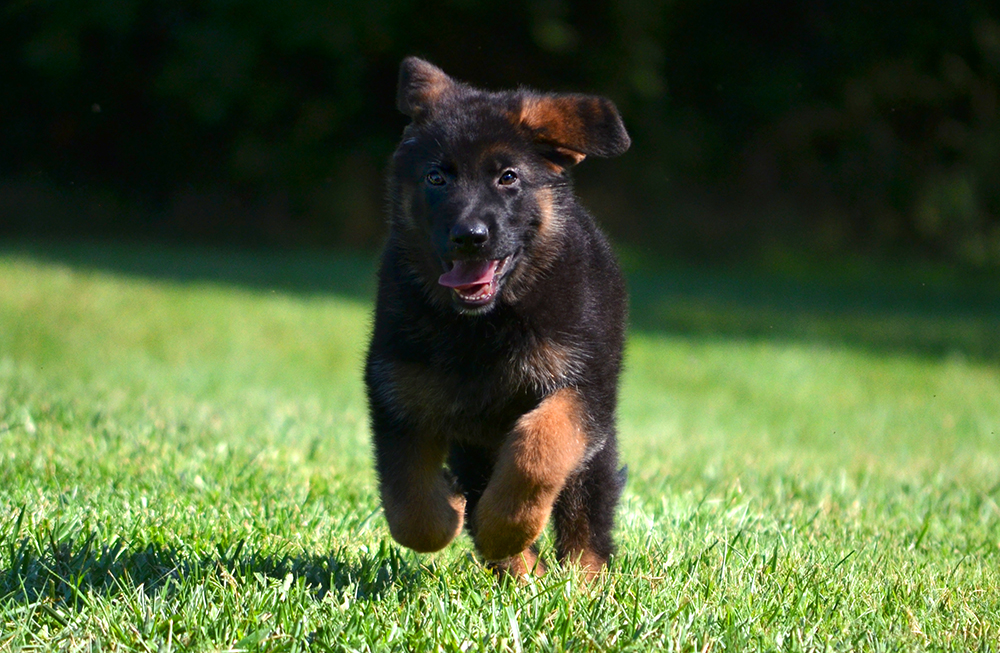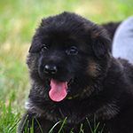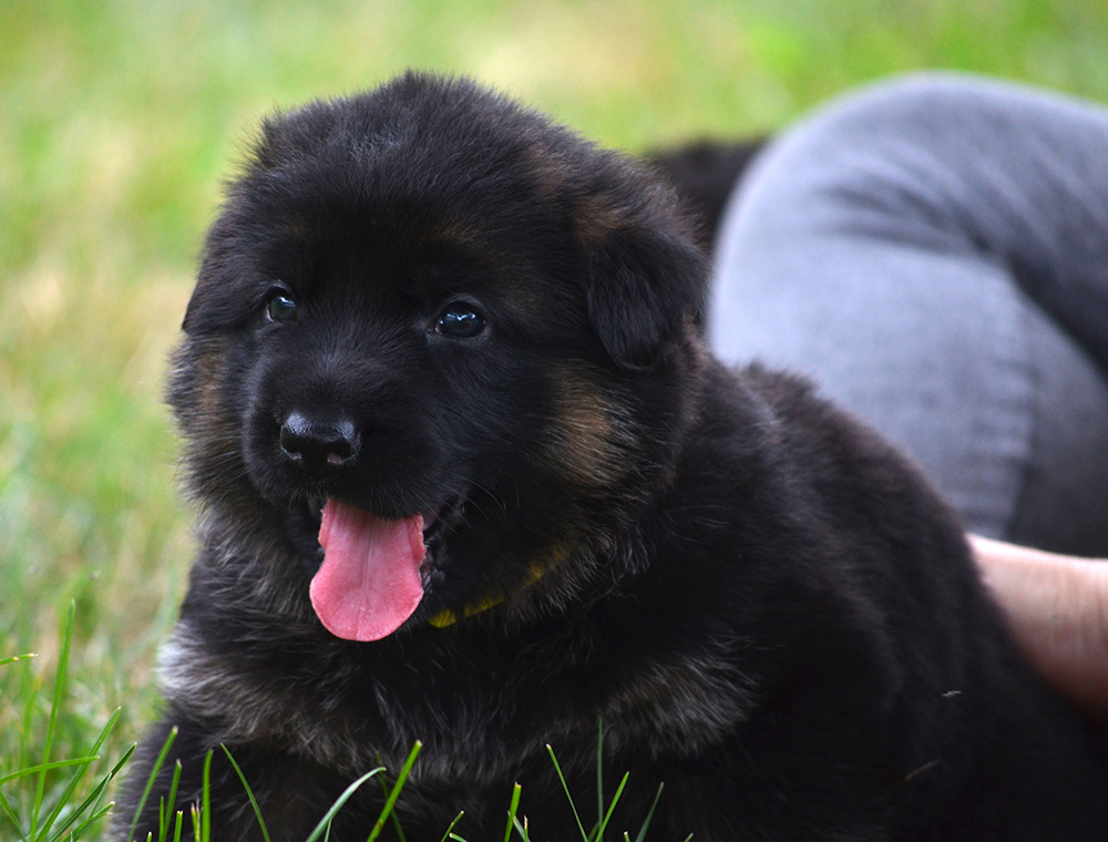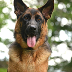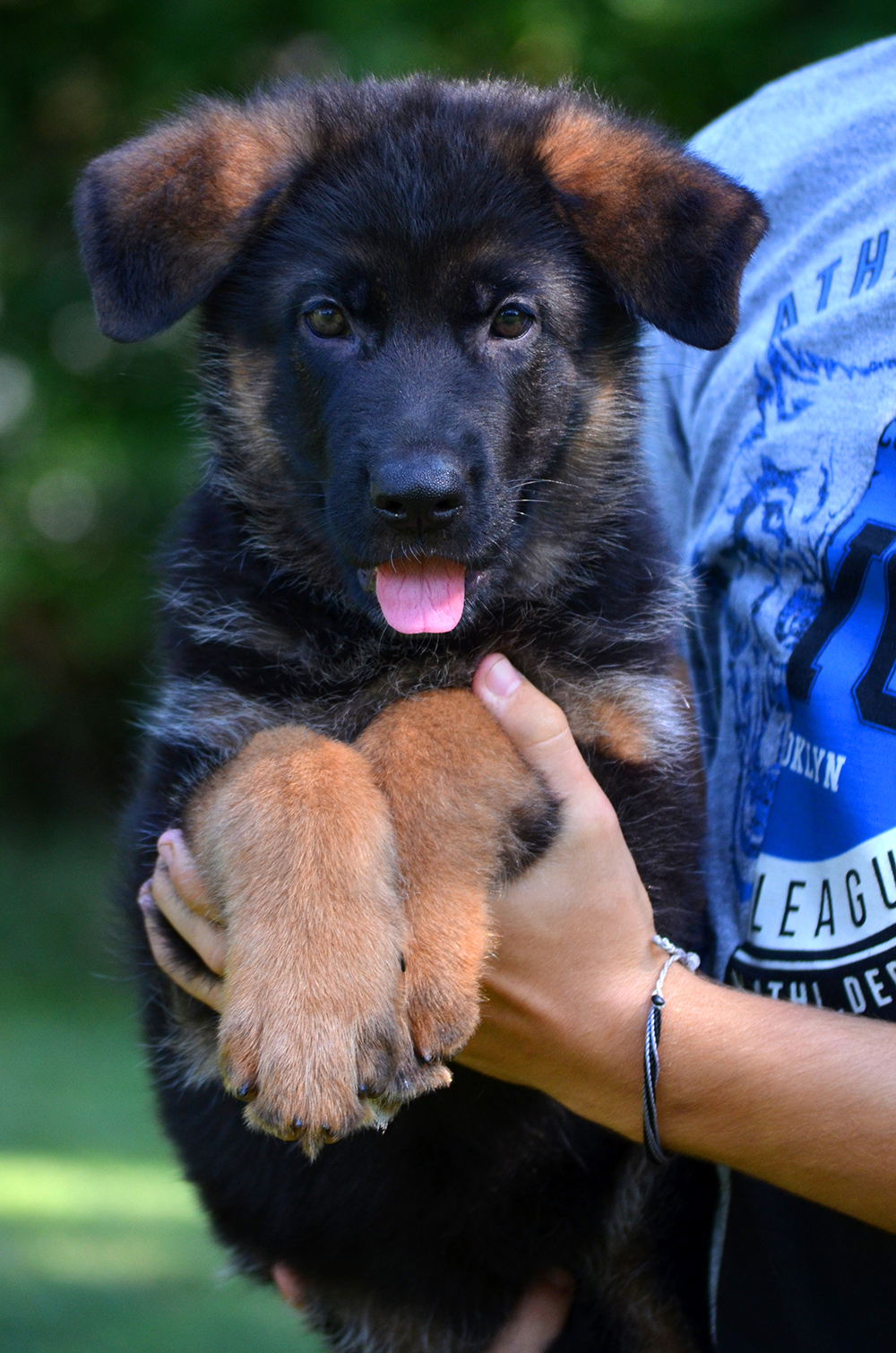 Drea ("Dray-uh" - meaning courageous) is a red and black European Showline daughter of our Velvet, and thus granddaughter of our popular guy, Finn! Drea's father is 5x SG1 Iris v.d. Alexander BH AD IPO (click for photo).