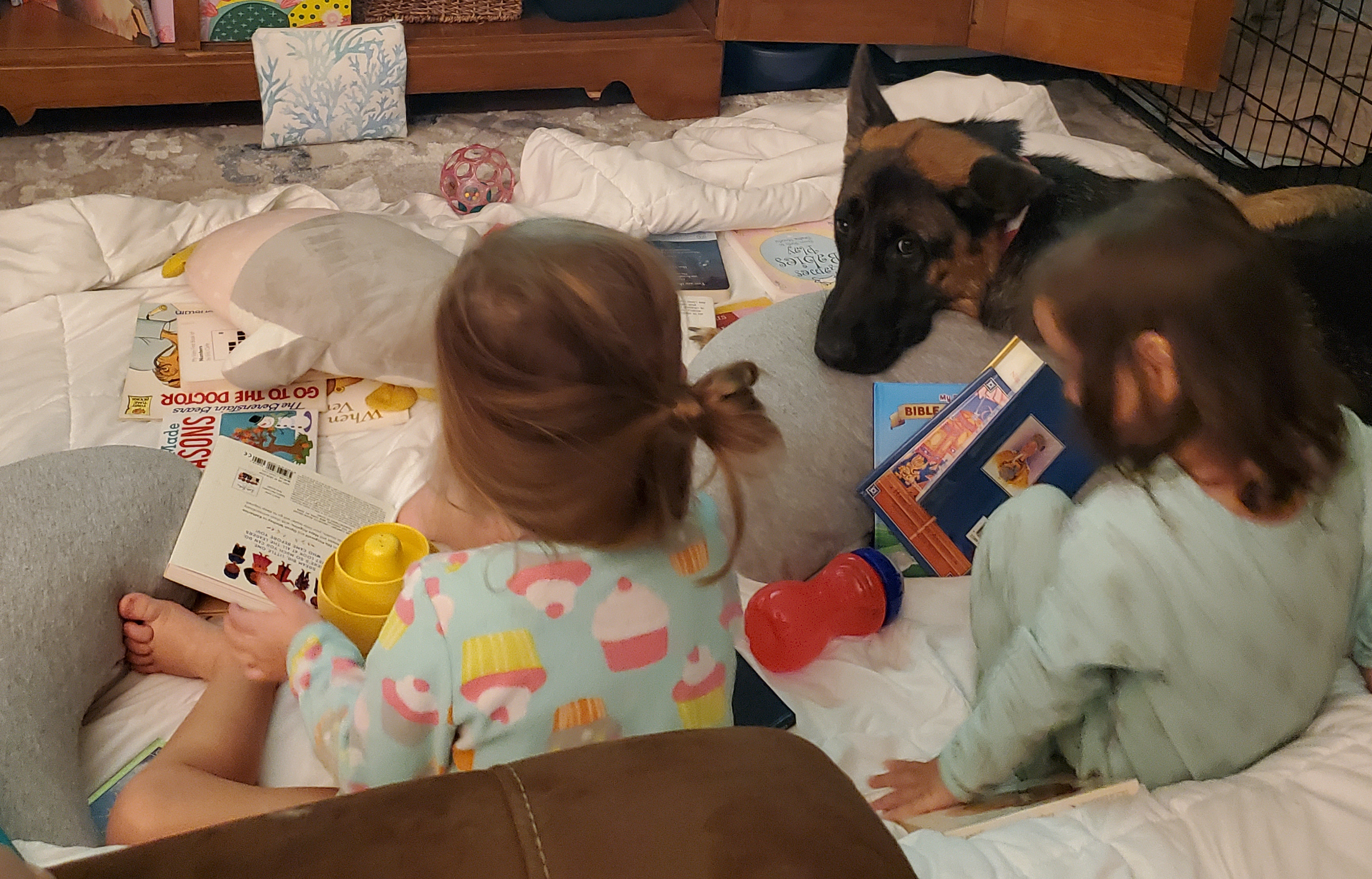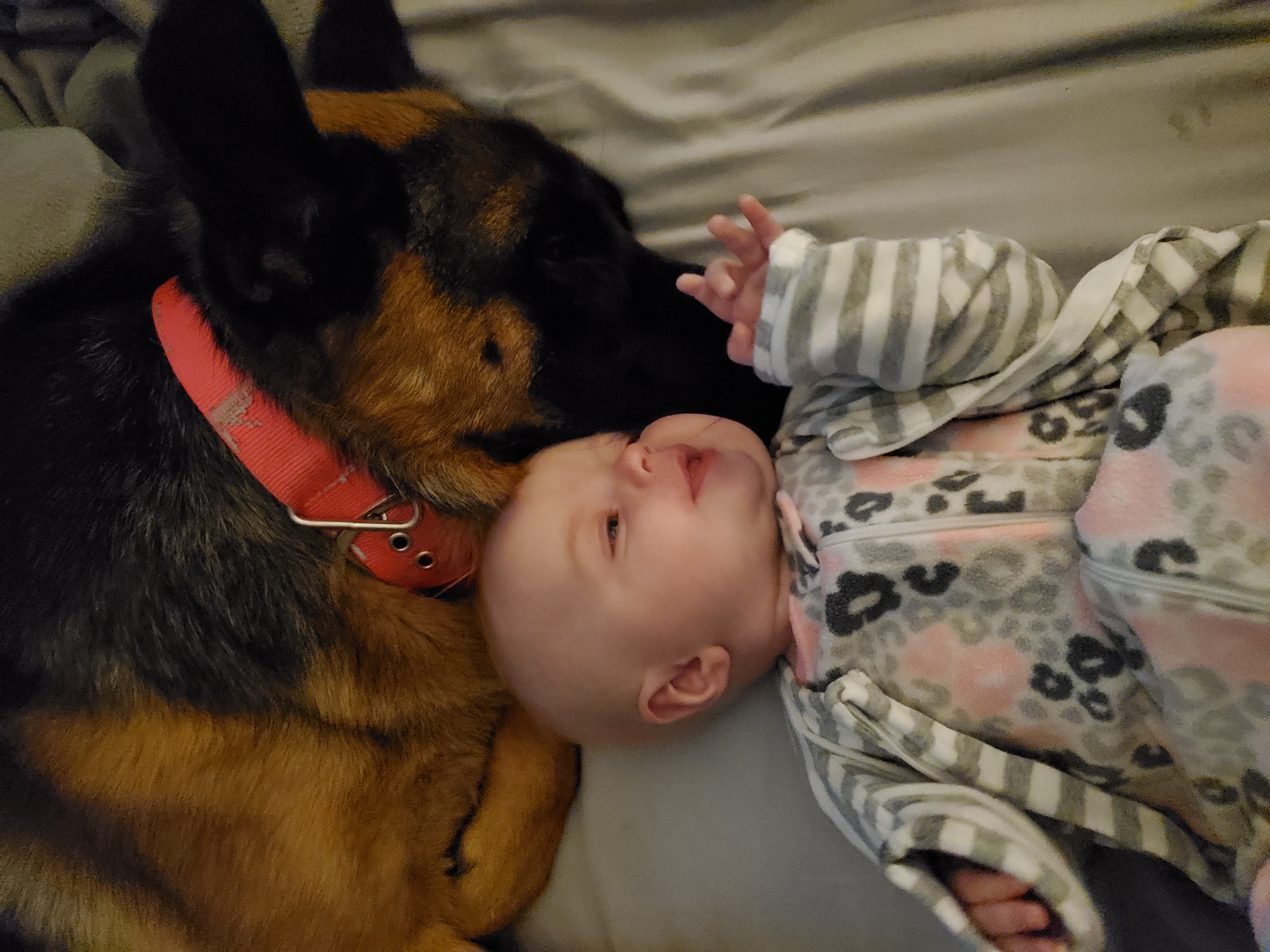 Drea has a plush coat, thick bone, a big head with beautiful coloring, great anatomy, smooth movement, strong capability, and a sweet temperament akin to Velvet and Finn's. Drea achieved her AKC S.T.A.R. Puppy title at 4 months of age, is on track with training to get her CGC title, and thereafter will be tested and evaluated by TDI to become a certified therapy dog. Her 6 month preliminary OFA hip and elbow x-rays looked great! We will be getting new x-rays and official certification once she comes of age. We're immensely proud to have bred such a phenomenal pup as Drea, and over-the-moon excited to potentially have her as a part of our breeding program in the future. As a part of our foster program, Drea is thoroughly loved and enjoyed by her family in Lynchburg, Virginia.