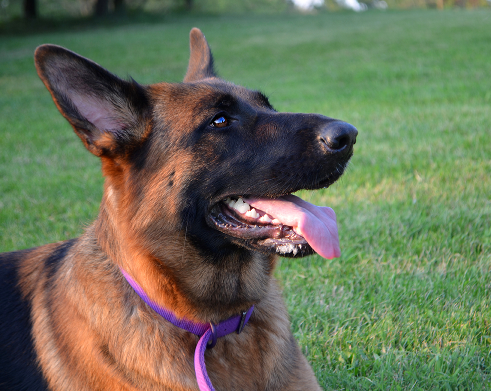 Gwen comes from a motherline that has been improved upon for 26 years by another breeder and veterinarian; the line is known to produce healthy, highly versatile, and well-temperamented dogs fit for a variety of show, work, and sport purposes while being excellent pets and companions. Gwen was the pick of her litter which was a combination of this wonderful motherline and the well-known top producing line from VA2 (NASS) Ricco and 2x VA1 (BSZS) Vegas. She is very well balanced in temperament; a sweet, trustworthy, fun girl that is also brave and watchful over her family. She has rich red and black coloring, smooth movement, a wonderful temperament, and great conformation. Gwen is a part of our foster program and is thoroughly enjoyed by her family.