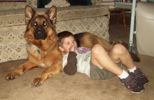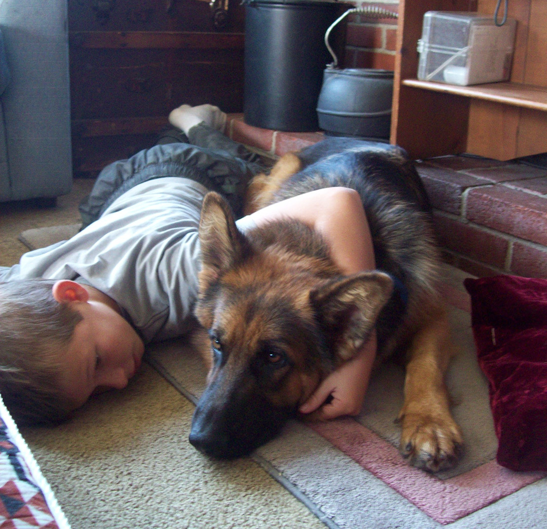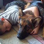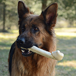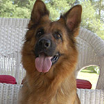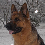 Harley is the foundation of our program. She has one of the most amazing temperaments we've seen in a German Shepherd. She's incredibly loyal, 100% trustworthy in any situation, very expressive and attentive, happily obedient, smart, gentle, playful, and on and on. Additionally she has great conformation, dark pigment, thick bones, and beautiful red and black coloring. While some dogs have value but do not produce well, Harley has proven to pass these wonderful qualities along to her progeny.
