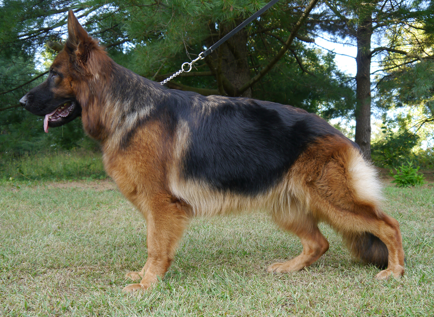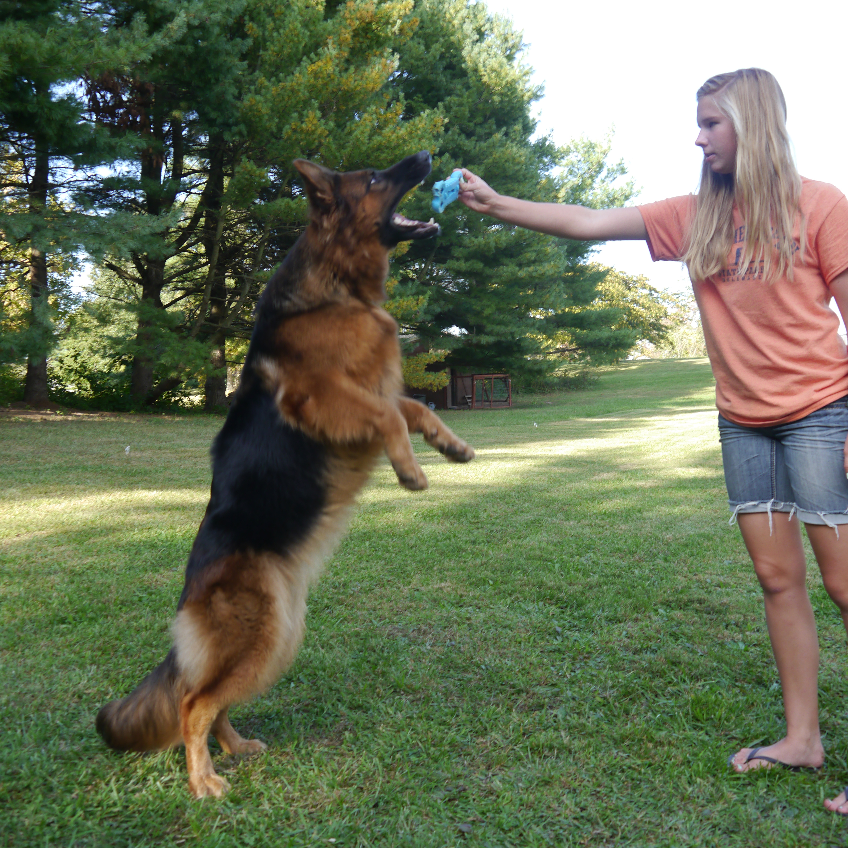 Jessen's Father, VA2 Ricco Von Der Zenteiche SchH3 Kkl1, won 2nd in the North American Seiger Show (NASS). Her grandfather is twice world champion and top producer, VA1 Vegas Du Haut Mansard SchH3 Kkl1. Jessen is only the second generation born in the states from her mother's side and first generation on her father's side. View Jessen's full, interactive pedigree here.