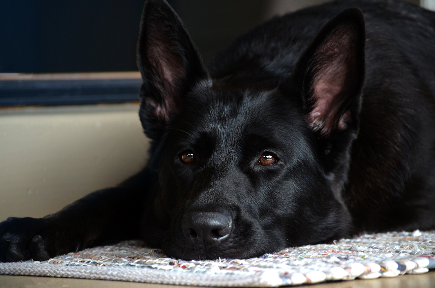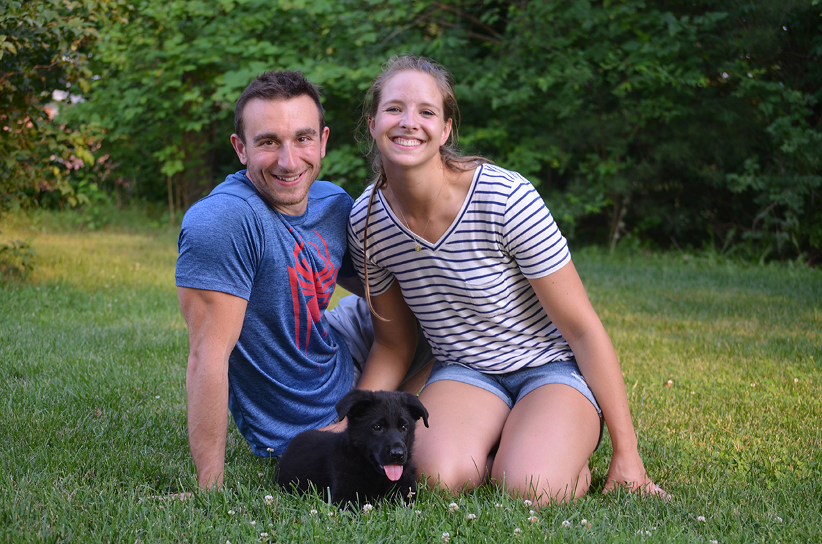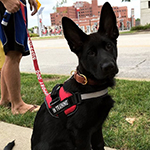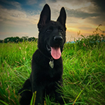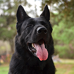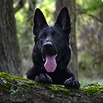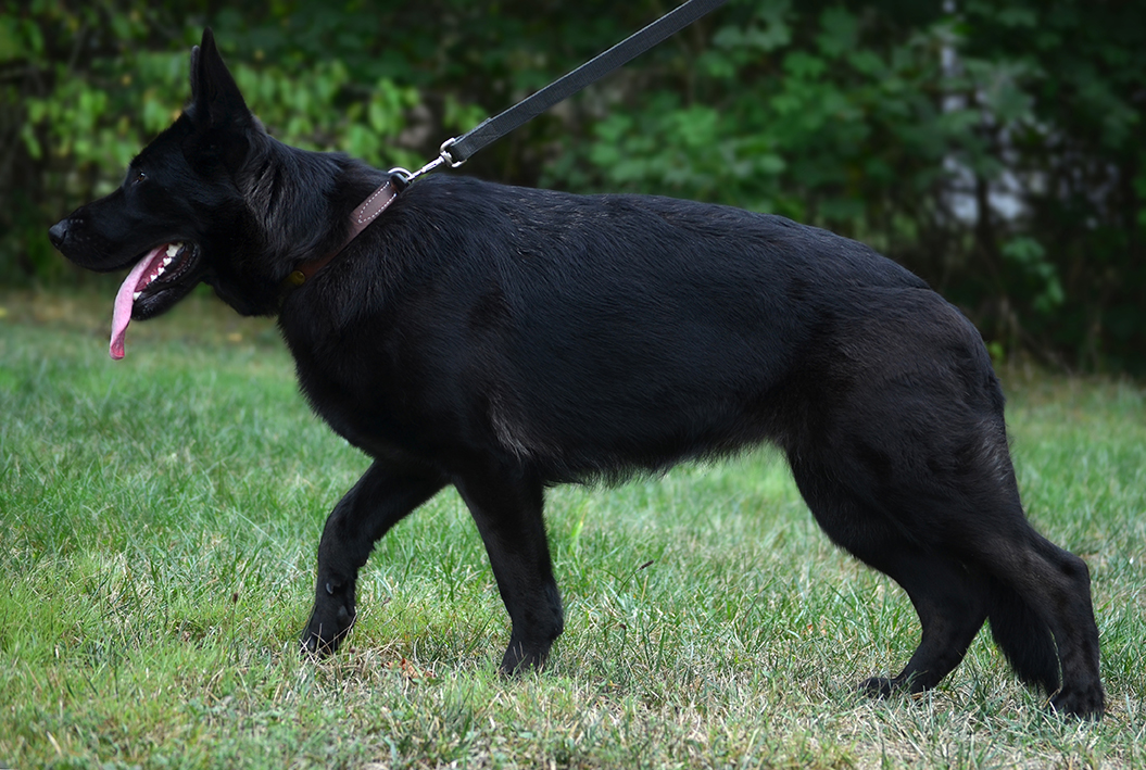 West Vom Hazak is a gorgeous, black, West European (Showline) Shepherd with temperament plus. She is a confident, intelligent, happy girl that is strikingly beautiful with a very sweet and brave personality. She loves to adventure with her foster family and is thoroughly loved and enjoyed by all. We've waited for years to add a black showline to our program and West has exceeded even our highest expectations! She has well above-average excellent bone and overall conformation with a desirable broad head. She's a fun and playful sweetheart, but also has a protective balance. She's brave, strong, smart, loyal, attentive, and capable--a perfect companion. She has a strong on-switch and drive for play, but can also cuddle on the couch.